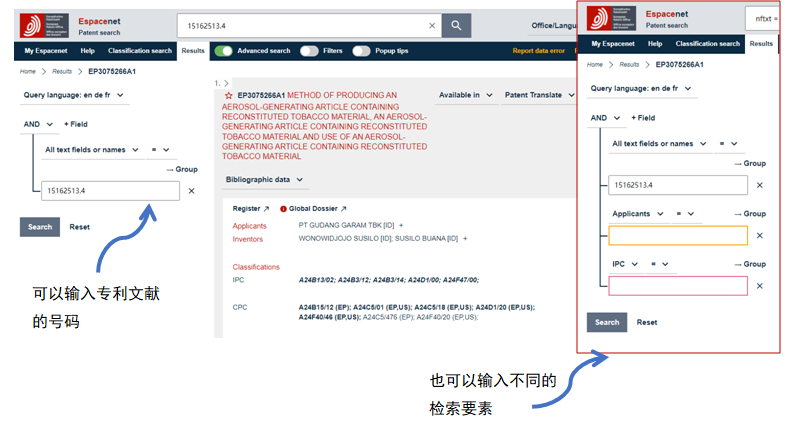 国外可免费使用的数据库有“欧洲专利数据库”、“PATENTSCOPE检索系统”等,其检索方式具体如下: