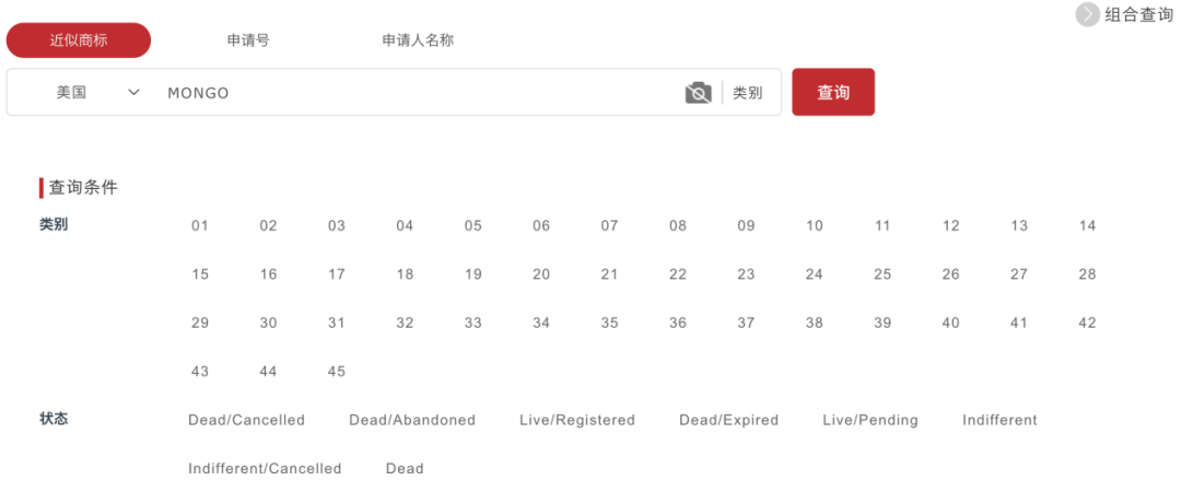 接下来,我们通过几组USPTO与康信IP平台的商标查询过程对比,带大家更加直观的感受下康信IP平台上线的美国商标检索功能究竟有多强大~