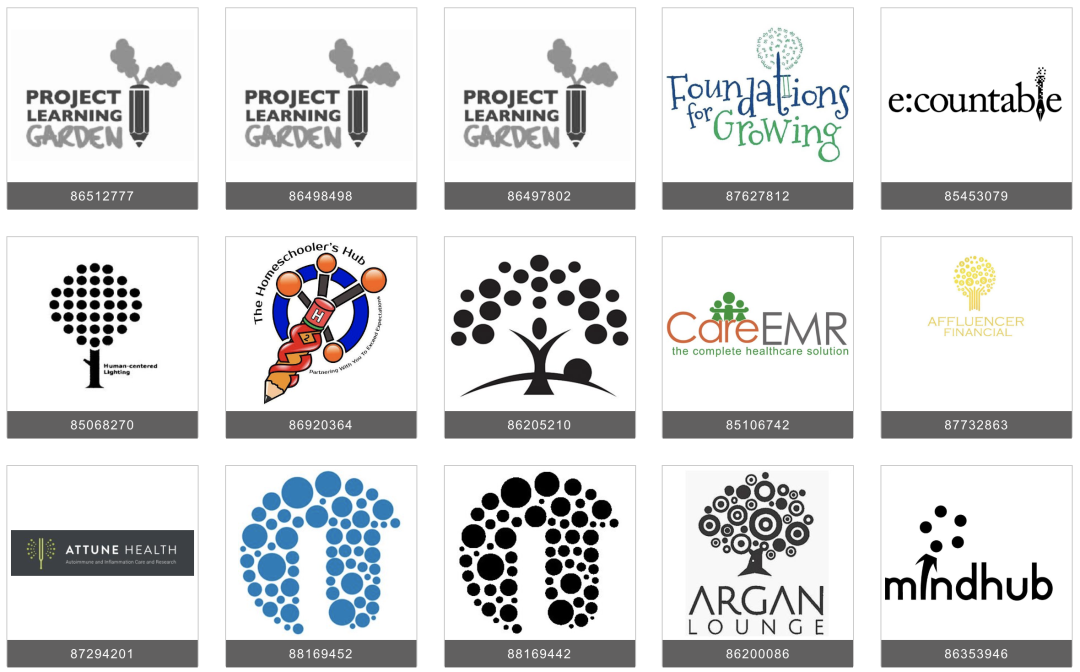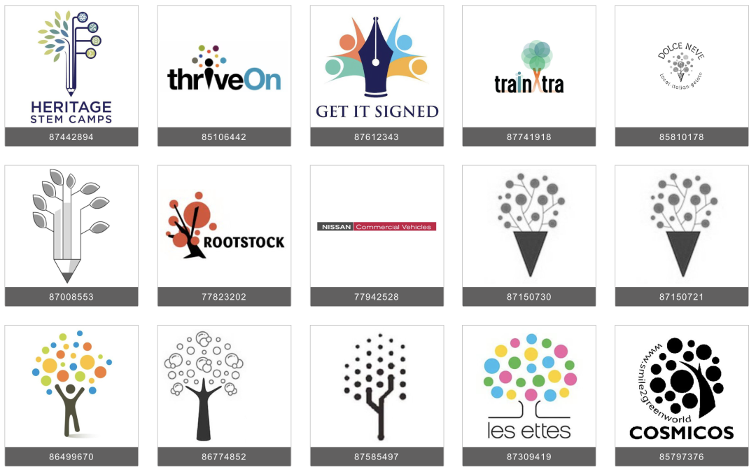 该图形包含多种元素,我们可以将其看作一棵树进行检索,在美国商标图形要素编码中对应的编码为:05.01.02(一般形状的树木或灌木丛,包括落叶树),检索结果共为我们展现出8840条。
